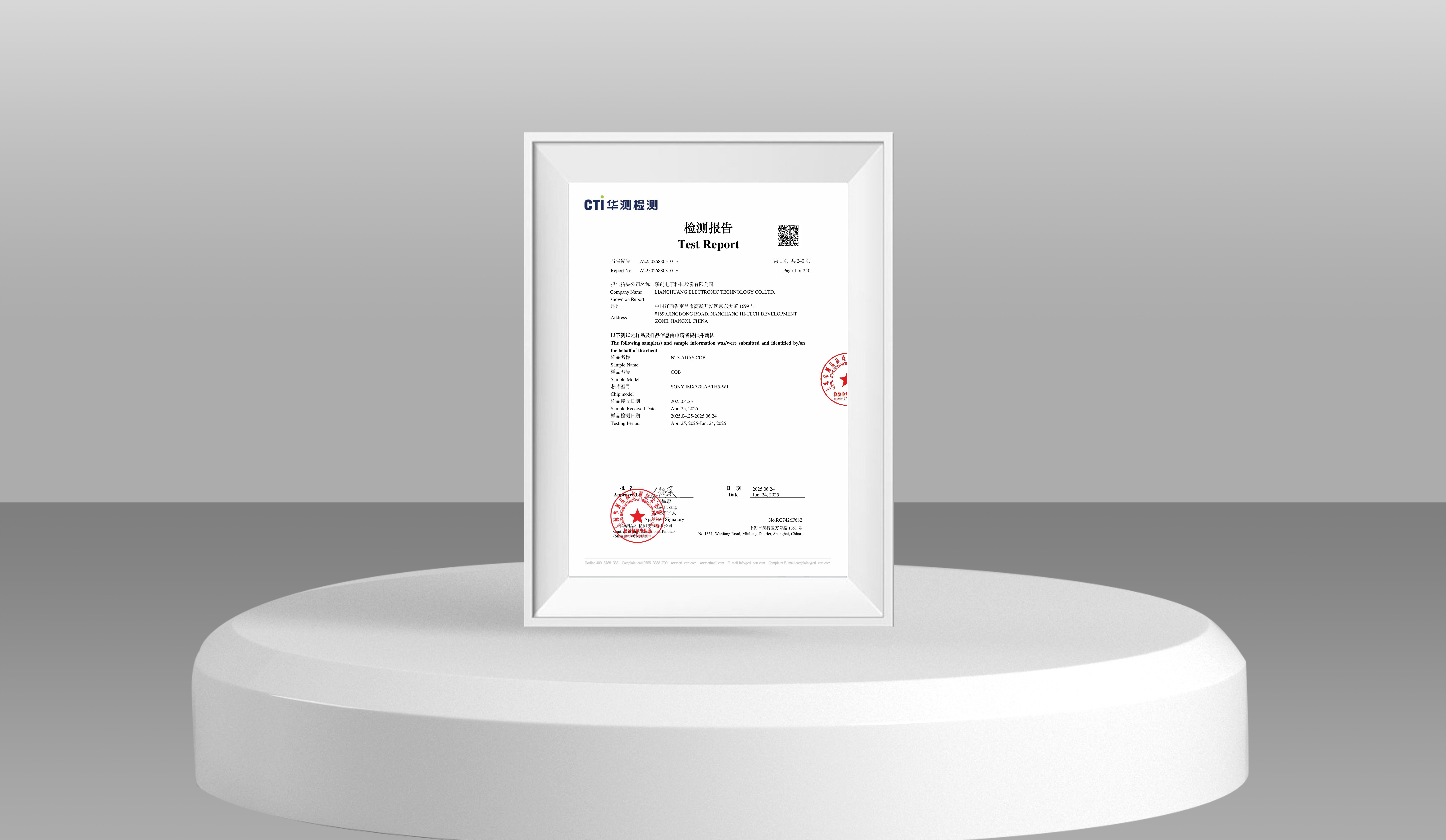 作为汽车电子委员会(AEC)制定的集成电路可靠性标准,AEC-Q100被誉为车载半导体领域的“黄金标尺”,其涵盖温度循环、高温老化、湿热测试等多项严苛实验,是衡量产品是否具备车规级稳定性和耐久性的关键依据。目前,车载COB封装仍处于技术普及阶段,而通过AEC-Q100认证的企业屈指可数。米兰平台率先完成该认证,不仅赢得了市场先机,也将推动行业向标准化、高质量转型。